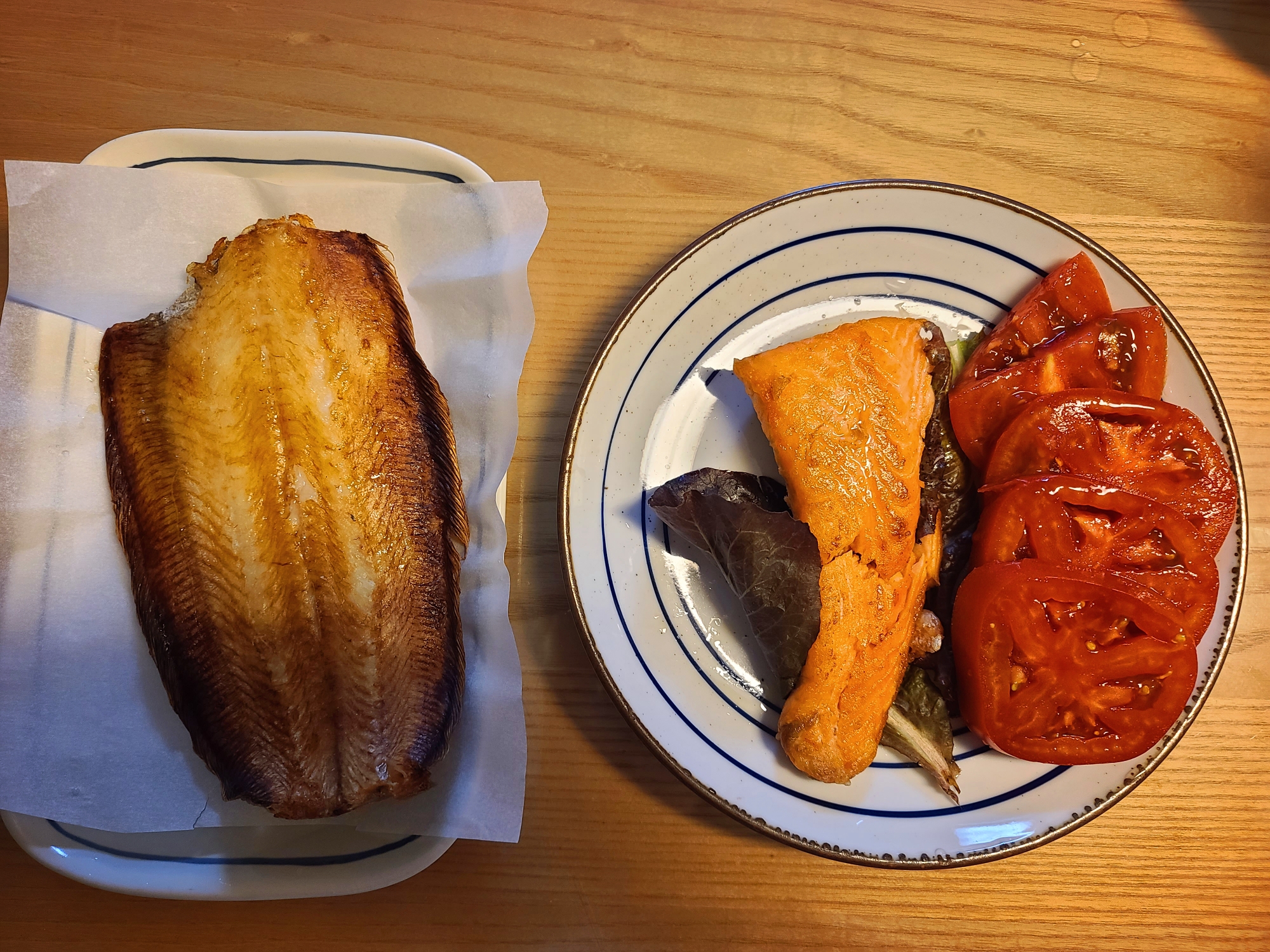 오늘의 저의 저녁은 박대구이와 연어스테이크입니다